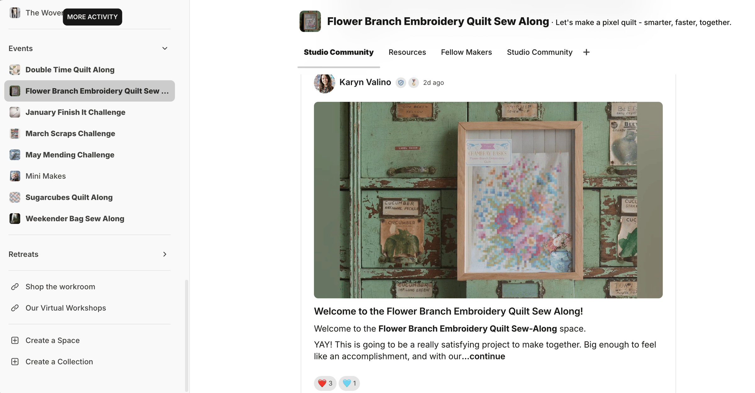 the workroom studio members have access to every community sew-along & our year long Challenge Series for free - it's just one of the perks of sewing with us. If the Flower Branch Sew-Along has you curious about what else we get up to in there, we'd love to have you. If you join now, you'll get access to the sew along + the member discount of 10% on regular price purchases and an additional 10% off the community pre-order.
