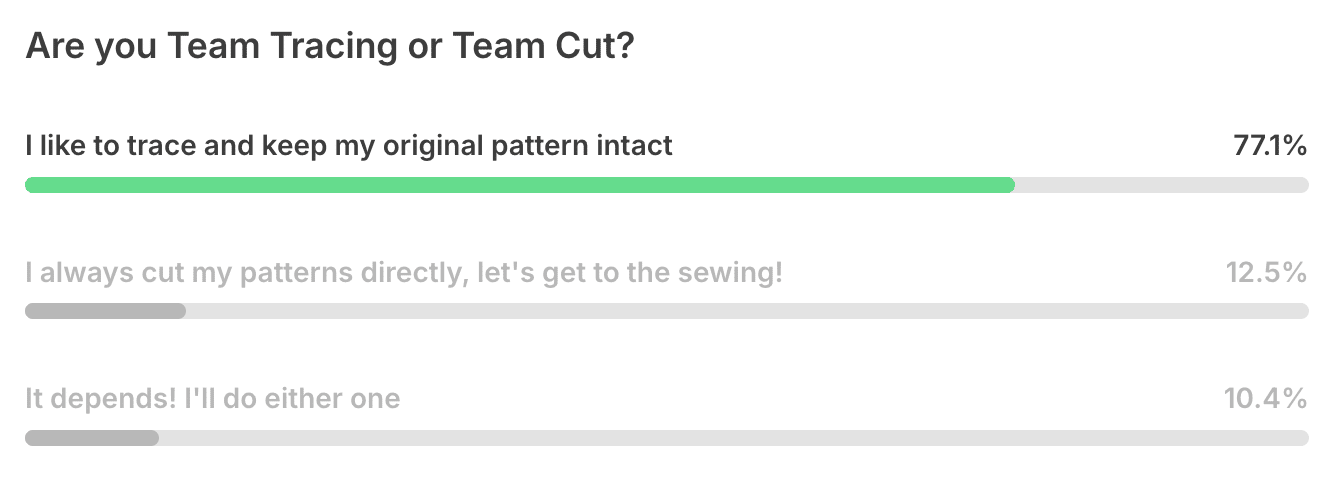 Thank you to everyone who answered our poll last week. I was actually surprised that so many of you were 'tracers'. If you scroll to the bottom of today's note, you'll find a new poll & a sneak peek of our next Sew Along!